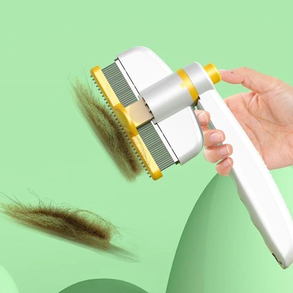 The brush is designed to allow easy hair removal from the comb after grooming. Simply push the button and the collected hair will slide off smoothly, keeping the brush clean for the next use.