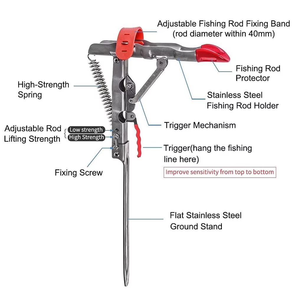 Made from heavy-duty stainless steel, this holder resists rust and stands firm against hard pulls. The folding structure makes it easy to carry and store, while adjustable angles and sensitivity settings ensure you never lose control of your setup.