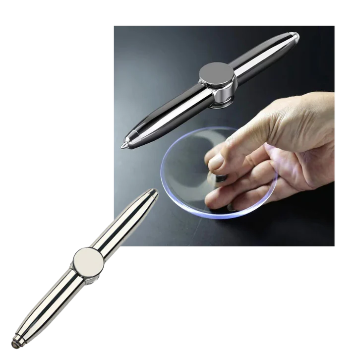 Why not bring a touch of elegance to your study area or office? The fidget spinner pen is available in gold, silver, copper, steel grey, red, and navy. It’s a balanced, fun toy, combining practicality with beauty thanks to its vibrant colors, light, and spinning feature. It’s perfect for those moments when you need to focus after a brief distraction, especially for individuals with ADD and ADHD!