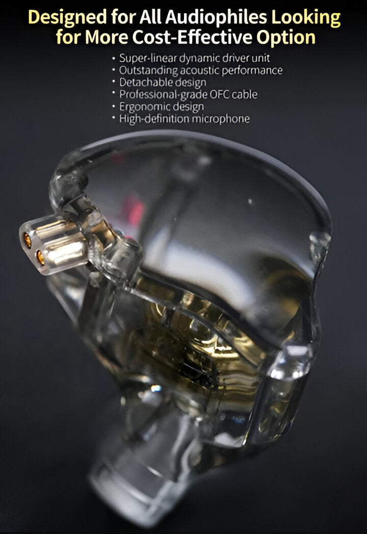 What's even better? The gold-plated 2Pin detachable design makes it easy to upgrade to wireless functionality with Bluetooth hooks. The transparent, minimalist design showcases premium components while maintaining durability. Additionally, the high-definition microphone and inline controls ensure clear communication.