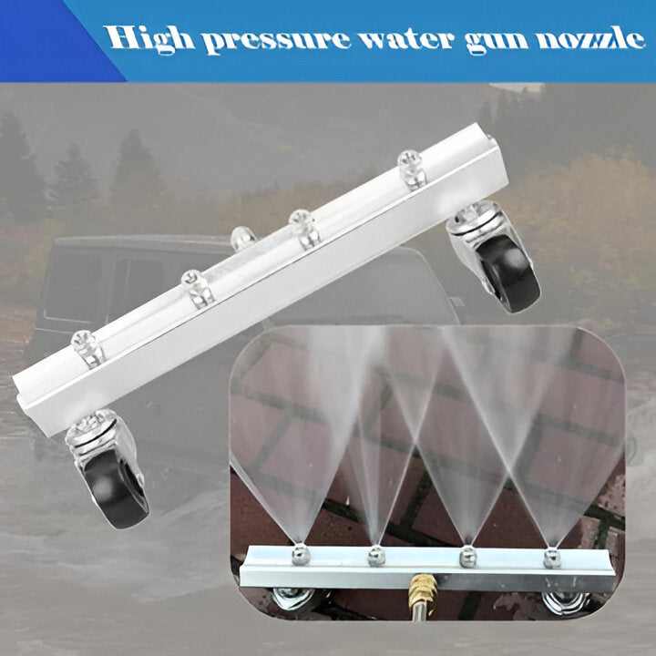 This undercarriage pressure cleaning attachment can be used to clean the undersides of cars, trucks, SUVs, commercial-size vehicles, and trailers of road debris, oil, and gasoline pollutants.